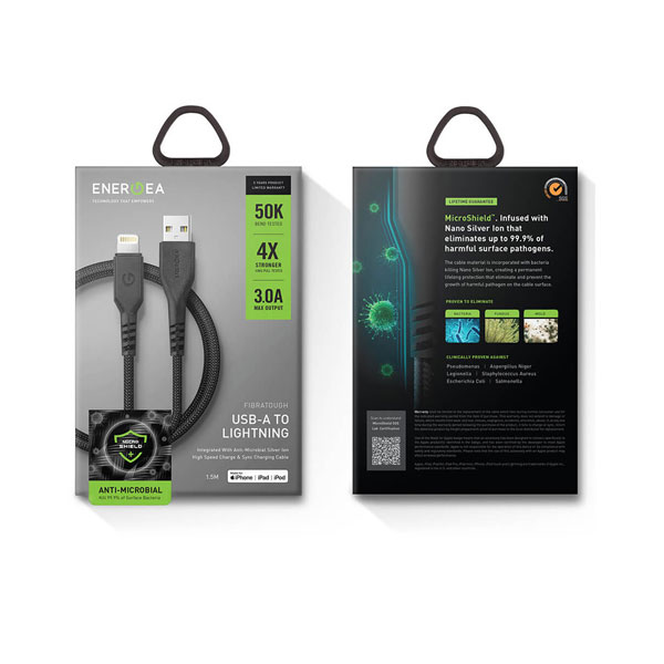 کابل انرژیا USB به Lightning مدل FibraTough آنتی میکروبیال طول ۱.۵ متر