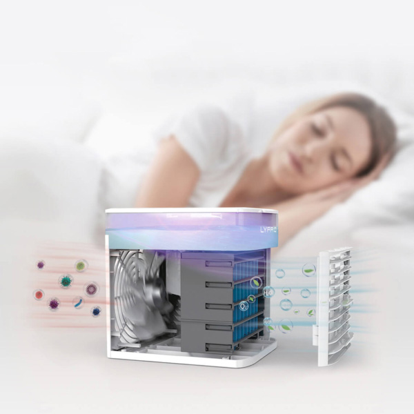 بخش اشعه UVC این دستگاه تا ۹۹/۹ درصد پاتوژن های مضر موجود در ذرات آب و غباری که در جریان هوای این دستگاه حضور دارند را از بین میبرد و موجب میشود هوایی پاکیزه در فضای شما جریان پیدا کند.