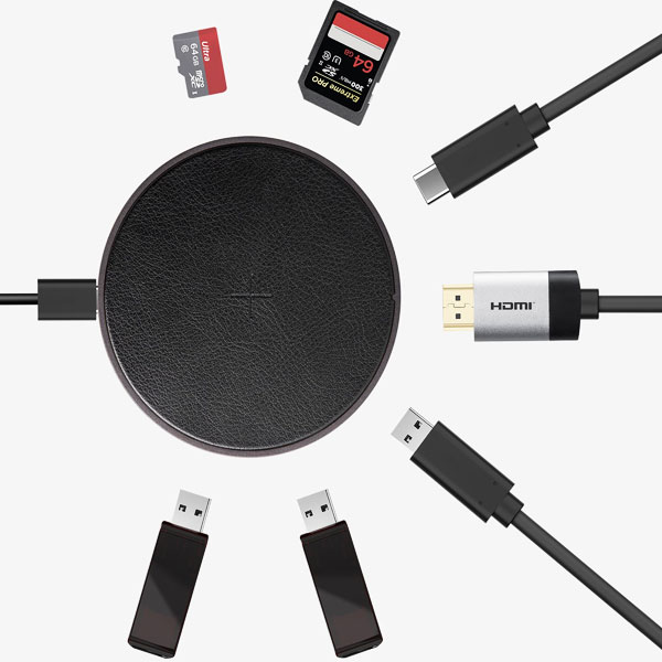 این هاب دارای سه پورت USB-3 ، یک پورت HDMI، یک پورت Type-C و یک کارتخوان میباشد. همچنین دارای قابلیت شارژ بسیم برای انواع دستگاه های اندروید و ios نیز میباشد. این هاب دارای توان خروجی ۵ و ۱۰ وات برای انواع دستگاه های اندروید و ۷.۵ وات برای ios است.