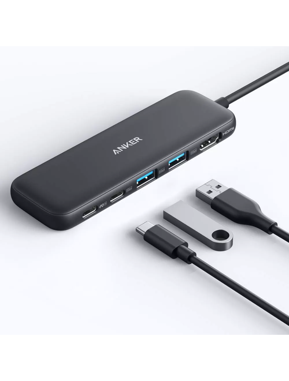 با آداپتور چند پورت Anker USB-C 5-in-1 پورت های بیشتری را به لپ تاپ USB-C خود اضافه کنید .
