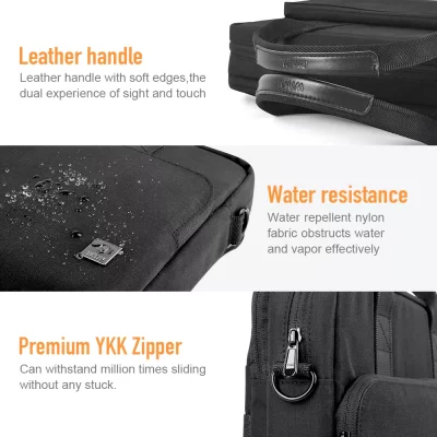 پارچه مقاوم در برابر نفوذ مایعات دارد قابل حمل به صورت عمودی است دارای دستگیره انعطاف پذیر است دارای لوگو اورجینال wiwu بر روی کیف میباشد محفظه مخصوص نگهداری لپ تاپ دارای پدهای ضد ضربه می باشد دسته طراحی شده ارگونومیک محکم که قابلیت حمل حداکثر را فراهم می کند. تمام قسمت های دارای زیپ بادوام YKK پوشانده شده اند که مانع از ورود گردوغبار و آب می باشد جنس.