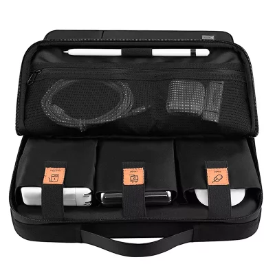 پارچه مقاوم در برابر نفوذ مایعات دارد قابل حمل به صورت عمودی است دارای دستگیره انعطاف پذیر است دارای لوگو اورجینال wiwu بر روی کیف میباشد محفظه مخصوص نگهداری لپ تاپ دارای پدهای ضد ضربه می باشد دسته طراحی شده ارگونومیک محکم که قابلیت حمل حداکثر را فراهم می کند. تمام قسمت های دارای زیپ بادوام YKK پوشانده شده اند که مانع از ورود گردوغبار و آب می باشد.
