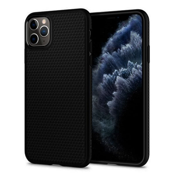 قاب محافظ آیفون ۱۱pro Max مدل Spigen Liquid Air Case قاب محافظ مشکی و طرحدار در قسمت پشتی که از جذب اثر انگشت جلوگیری کرده و دربرابر لیز خوردن مقاوم است.